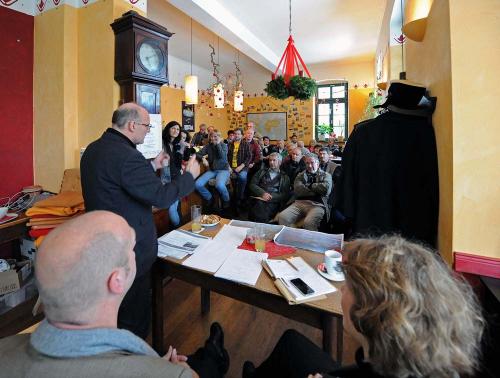 Ralf Jung-König stellte den Stand der Planungen und die möglichen Trassenverläufe mit Hilfe einer Präsentation dar. Der Vorsitzende des Bundestags-Verkehrsausschusses, Winfried Hermann, machte dann klar, dass die Verkehrswegeplanung des Bundes, ein Relikt aus den ersten Jahrzehnten nach dem Zweiten Weltkrieg, heutigen Herausforderungen nicht mehr gerecht werde.